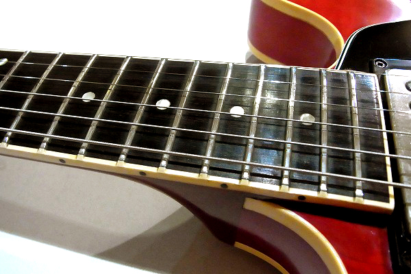 現在弦高は12フレット1弦1.2mm、6弦1.8mmで、非常にローアクションで弾き心地は抜群です。