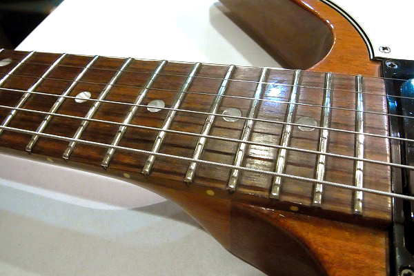 フレットは相応に使用上の減りが見られますが、まだ8割がたは残っており、
