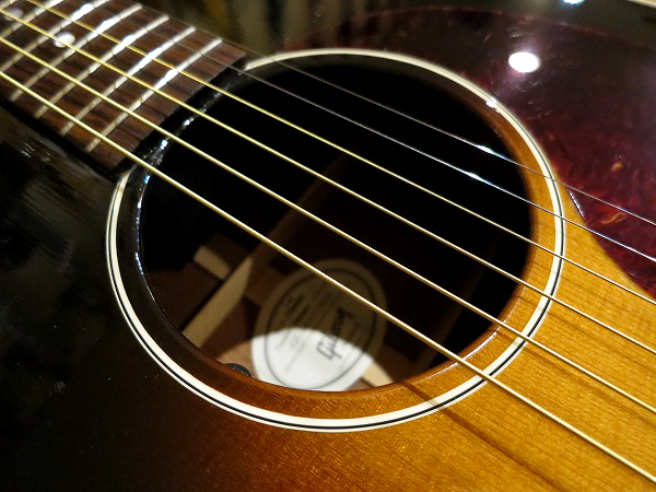 50'sスタイルのJ-45のルックスを損なう事無く、サウンドホール部分に小さめのVolumeコントロールを装備、