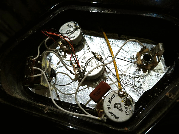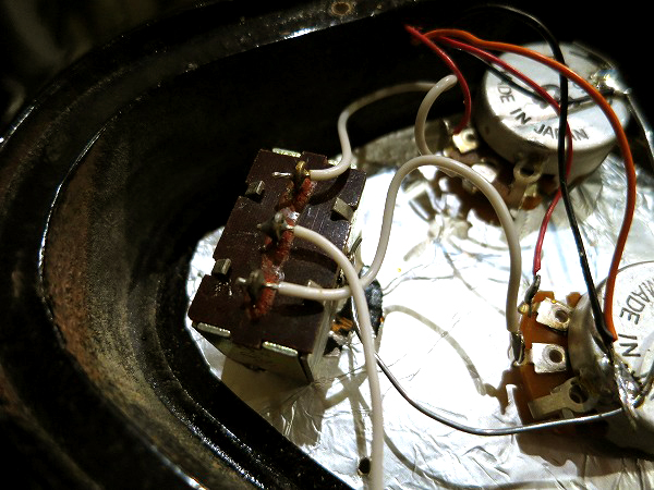 現在は3点式レバースイッチ(ピックアップセレクター)に交換されています。
