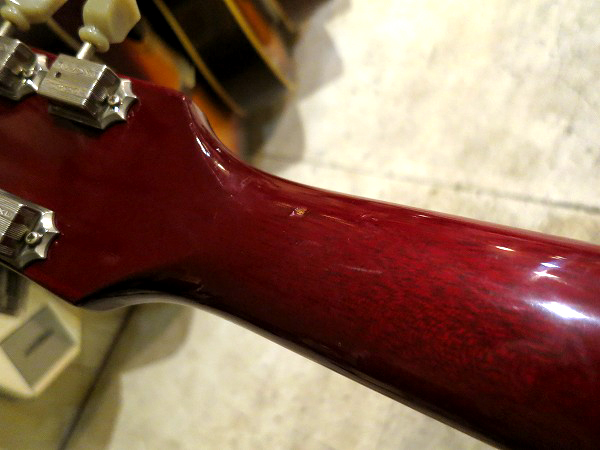 ネック裏も小さな塗装剥がれが1ヶ所ある他、打痕によるへこみ傷がいくつかございます。