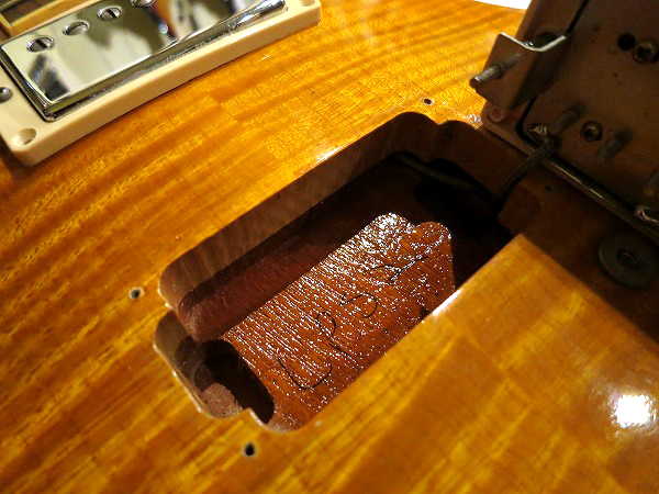 ボディはマホガニーバックにトップはフレイムメイプルトップ、