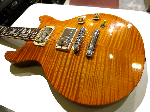 こちらは美しいトラ杢が浮き出たフレイムメイプルトップ仕様で、