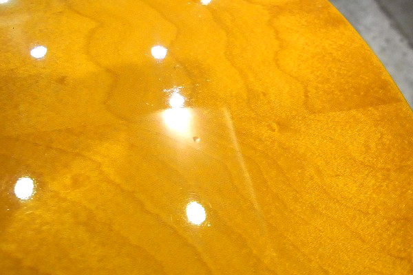 前述のシンプルな美しいメイプルの杢目が琥珀色から浮かんでおり、