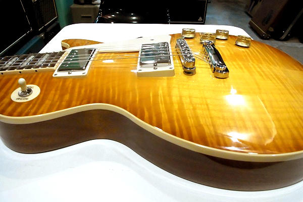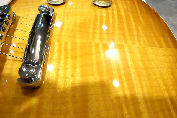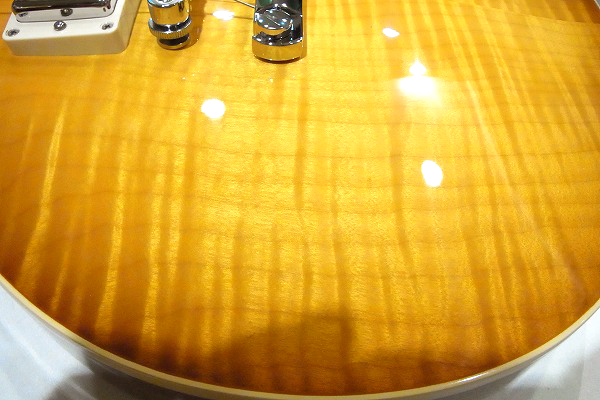 ハニーサンバーストのカラーから美しいトラ杢が浮かび上がり、
