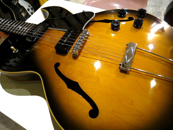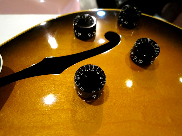 セミアコの豊かな箱鳴り感と相まって、このES-135の特徴的なサウンドを生み出しています。