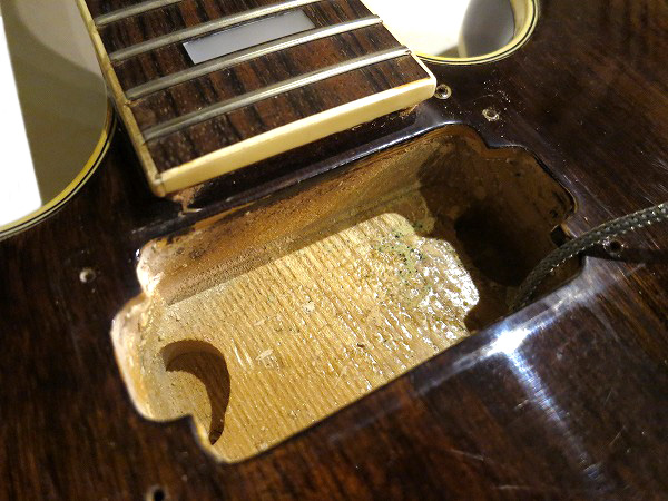 ボディはもちろんセンターブロック付のセミアコースティック構造となっており、