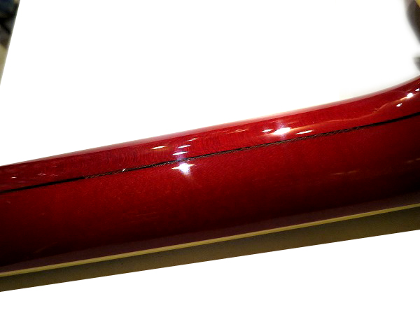 ネック裏も1ヶ所打痕が見られるほか、塗装の線状のクラックも見られますが、