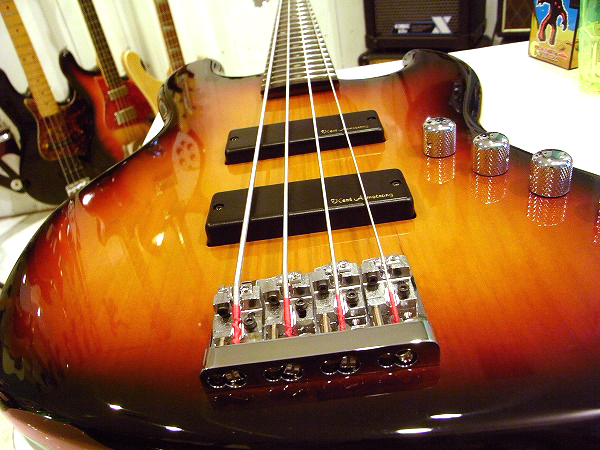 を搭載。 クリアーかつ太くハリのある美しいサウンドが特徴的で、 更に2バンドEQプリアンプを搭載し、アクティヴベースならではのレンジ(音域)の広いコントロールと パワーがありつつもクリアでパンチのあるサウンドを実現しています。 クセの少ないアルダー材にこのアクティヴピックアップ+プリアンプの組み合わせは、 一見相反するようなコンビネーションですが、 絶妙のマッチングにより、太く、抜けの良い、クリアーで、タイトな上質なベースサウンドを実現しています!