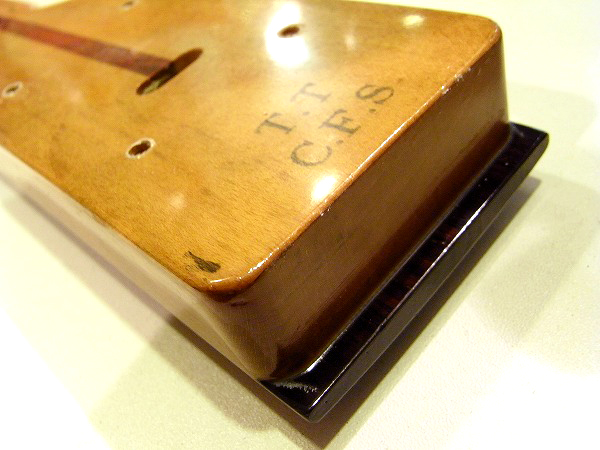まず、ネックに採用されているのは、「タイムレス・ティンバー」のメイプルで1ピースの仕様。 タイムレス・ティンバーとは、今から70年〜250年前に、大自然の原生林でゆっくり時間をかけて育った木材で、 アメリカはウィスコンシン州で18世紀中頃から1930年近くにかけて伐採された後、 カナダのスぺリアル湖の湖底に70年〜250年も沈んで眠っていた本物のヴィンテージ木材。 20世紀末に湖底に眠る大量のこの丸太が発見され、2000年になりやっと世の中に出回るようになりました。 水中は木材保存に良い環境と言われ、タイムレス・ティンバーは空気中の酸素や直射日光の影響をあまり受けない 寒冷地の水温の低い湖底に沈んでいた為、より良い環境で眠っていました。 長い時間をかけて水中のバクテリアにより木材の不純物が食べつくされ、 繊維質が壊れない状態で、木材の不純物が取り除かれました。 その為、非常にレゾナンスがアップしています。 また、タイムレス・ティンバーは現在の植林メイプル材とは異なり、非常に木目がつまっています。 人の手が入らず、長い時間をかけて原生林で育った為、年輪豊かな細かい密度の高い木材となっています。 このモデルにはその貴重なタイムレス・ティンバーのメイプル材が贅沢にも採用されています。