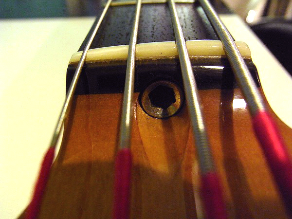 現在弦高は12フレット上1弦1.5mm、4弦2mmのローアクションにセッティング。