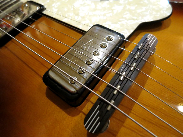 ピックアップはオリジナルのミニハムバッカーを2基搭載、カバーにはHofnerの刻印も入っています。