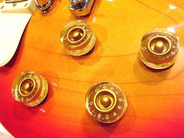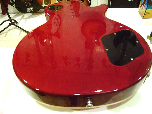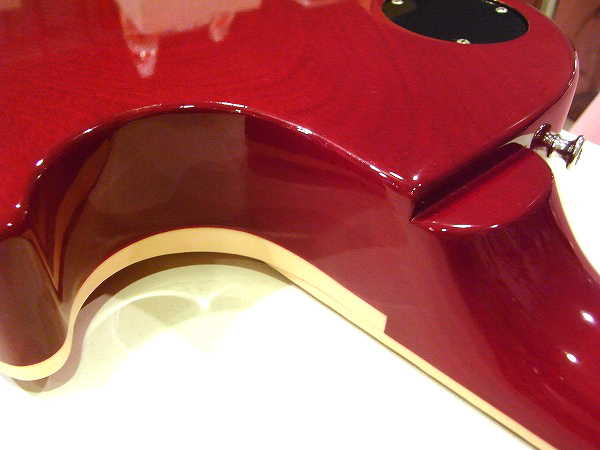 今回入荷した1本は、左利き用レフティ仕様、美しいメイプル・プレーン・トップのチェリー・サンバーストカラーの1本で、 激キルトやトラ杢のレス・ポールも派手で高級感があって良いですが、 木目の綺麗なメイプル・プレーントップはシンプルで美しく、こちらがお好みのレス・ポールファンの方も多いです。