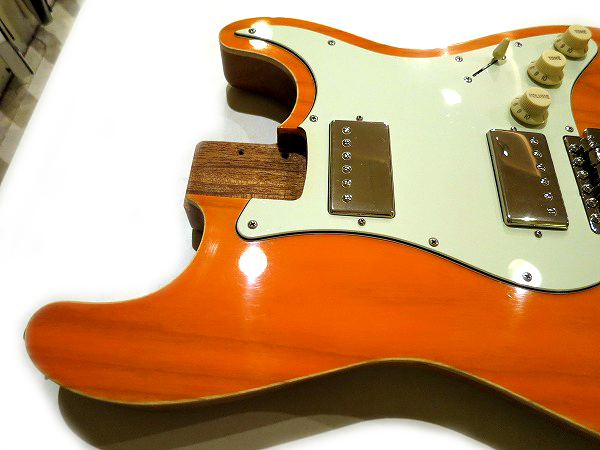 こちらは国産の工房によるオーダーメイドボディで、詳しい工房名、メーカー名は不明ですが、