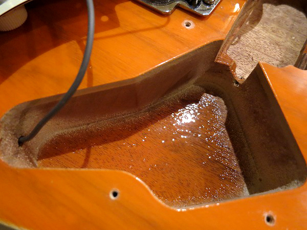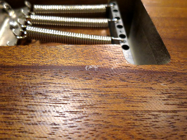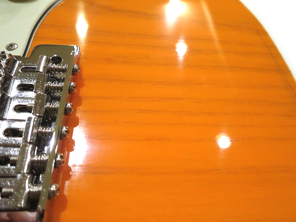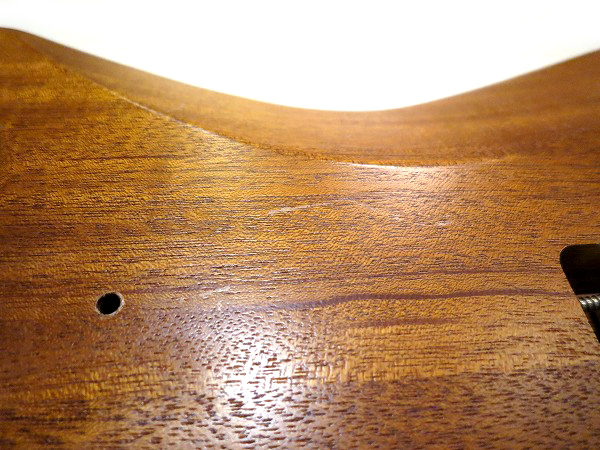 アッシュの杢目に入ってやや窪みが見えるほどです。