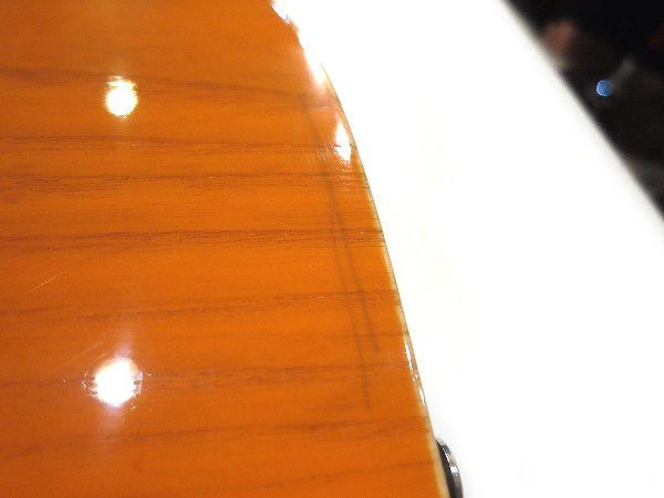 元々木材に付いていたと思われる傷の様な線がトップのエンド近辺に見られますが、