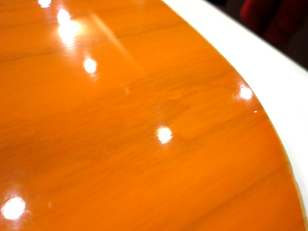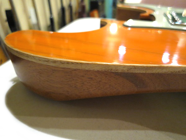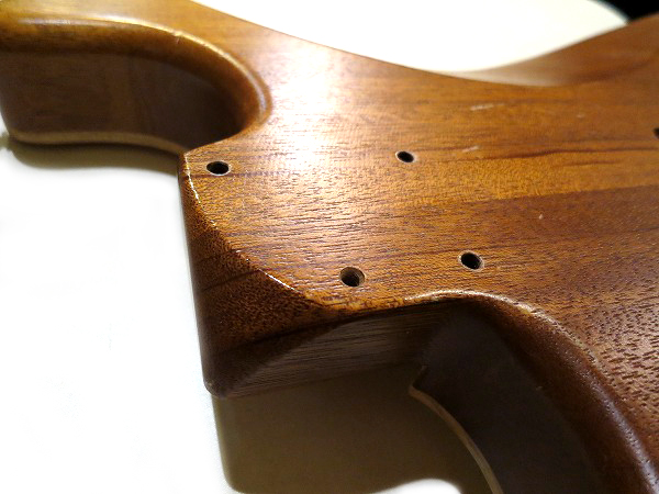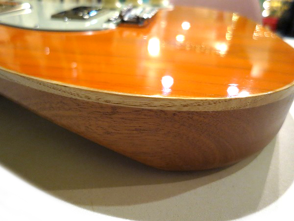 センター2ピースの良質マホガニーに、トップに5mm厚のアッシュが貼られている仕様で、