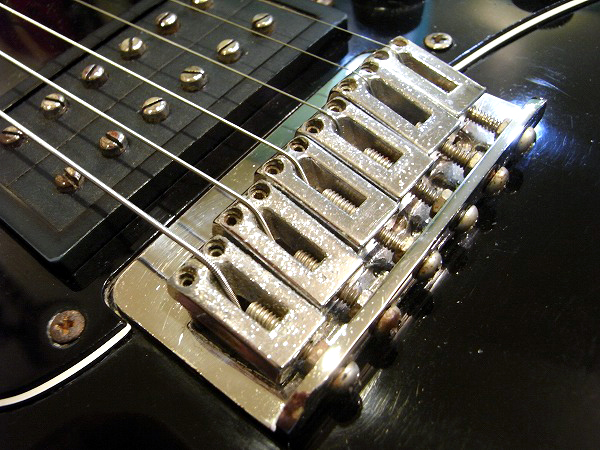 ブリッジはノントレモロのハードテイル仕様で、弦は裏通しです。