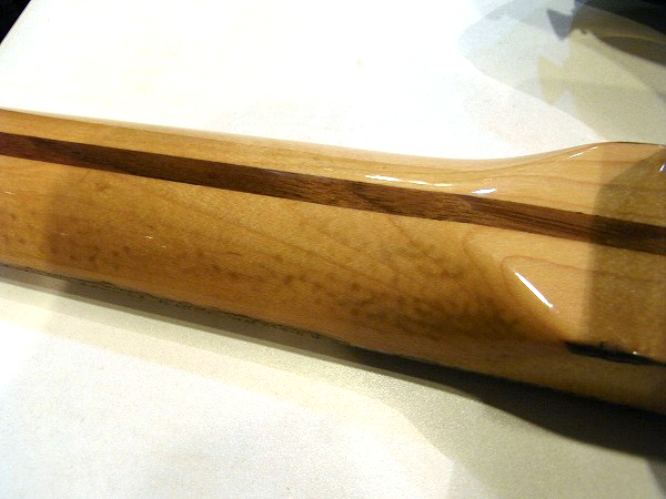 ネック裏はネックエンドのエッジ部分に塗装剥がれがある他、