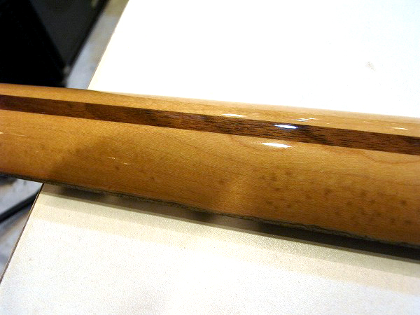 ネックはネックフレットサイドにクリアー塗装の剥がれと、木部の黒ずみが出ています。