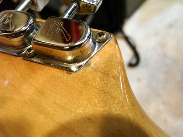 ペグポスト近辺にはクリアー塗装の線状のウェザークラックが多数見られます。
