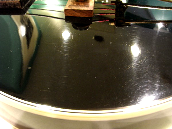 セミホロウ構構造が分かるように、フロントピックアップ部のザグリ部分からの拡大写真