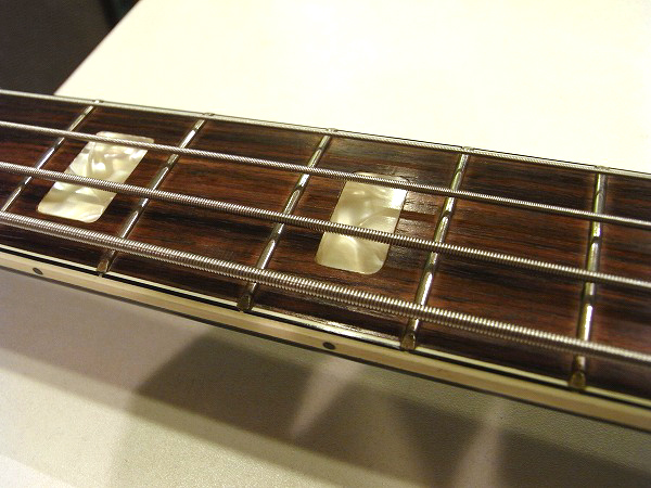 ネックは反りも無く真っ直ぐにロッド調整済で、 ロッドは適正に調整後、まだ余裕のある状態ですので今後の矯正も可能です。 フレットも多少の減りはあるものの、まだ7分程度は残っており、 大きな弦溝やへこみ等も無く、まだまだ十分に使用出来る問題無い状態です。 磨きも入れておりますので、光沢も取戻し、ピカピカの綺麗なコンディションです。 現在弦高は12フレット上1弦2mm、6弦2.5mmとビザール系、ヴァイオリン・ベースとしては 非常にローアクションで、とても弾きやすいコンディションで、 上記のセッティングで、各ポジション、フレットバズ(ビビリ)や音づまりも無く良好な出音です。 電気系統もチェック、清掃済で、ガリ等も無く非常に良好な状態です。