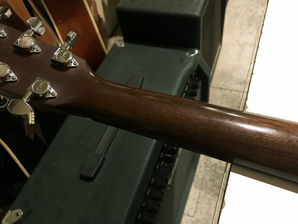 さらにしっかりとメンテナンス、セットアップも施しておりますので、弾きやすく、ビビリやつまりも無く、良好な出音です。現在弦高は12フレット上1弦1.8mm、6弦2.5mmのローアクションで弾き心地抜群です。ペグ動作も問題無く、良好なコンディションです。各所調整・セッティング済の、弾きやすく出音良好の、非常に良好なプレイコンディションです。