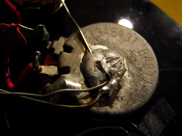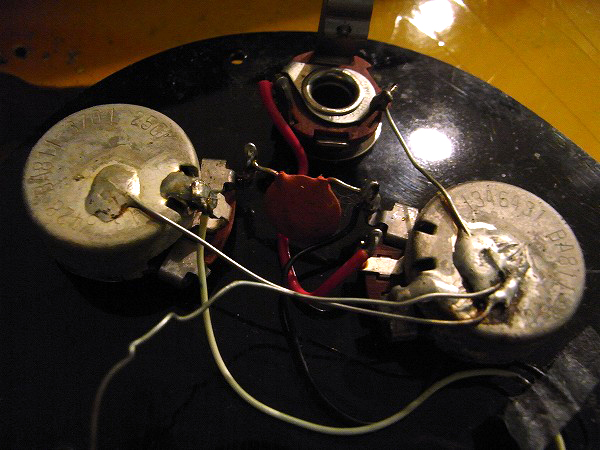 ポットは2つともCTSの1964年製、ピックアップ、ブリッジ、ブリッジのスタッドボルト、ピックガード、ノブ、ペグ、