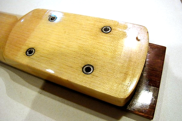 ネックジョイントは4点止めボルトオンですが、通常の木ビス式では無く、