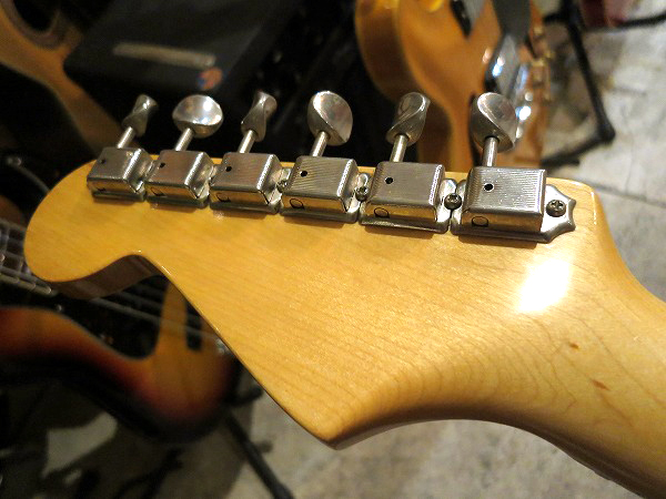 ブリッジはヴィンテージスタイルの6点止めシンクロトレモロ、ペグはクルーソンタイプと