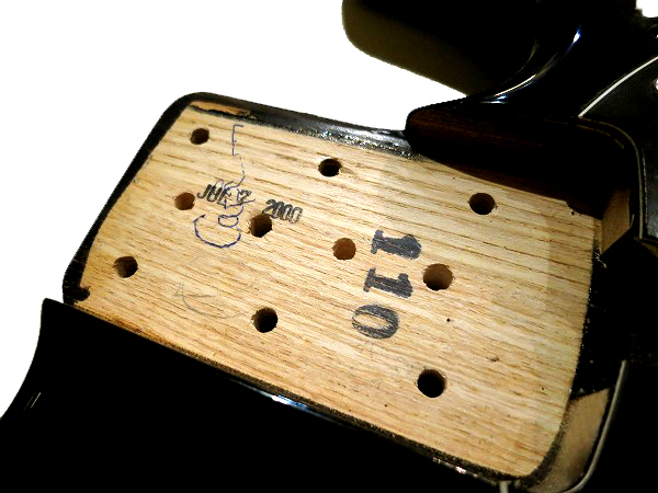 コンディションは良好です。 ネックはロッド調整済みで、反りも無く真っ直ぐで良好な状態に調整済です。 ロッドはまだ余裕がありますので、今度の調整にも対応します。 フレットは相応に減りは見られるものの、まだ8割がたは残っています。 大きなへこみや弦溝もありません。 フレットは丁寧に磨きも入れ、光沢も大分取戻し綺麗なコンディションになっています。 指板も相応に使用感、若干の減りは見られますが、 大きな減りや傷は無く、良好なコンディションです。 指板も丁寧にクリーニングの上、コンディショニングも行っておりますので、 良好なコンディションになっています。 ナット、ブリッジ溝も大きな減り無く、良好な状態です。 ブリッジサドル弦高調整ビス、オクターブ調整ビスも、 サビつきによる固着も無く、調整上の動作も良好です。 各部良好なコンディションで、しっかりとメンテナンス、セットアップも施しておりますので、 弦高はローアクションで弾きやすく、ビビリやつまりも無く、良好な出音です。 現在弦高は12フレット上1弦1.5mm、6弦1.5mmです。 電気系統も各部メンテナンス、チェック済です。 出音、各コントロール共に全て良好で問題ありません。 ペグ動作も問題無く、良好なコンディションです。