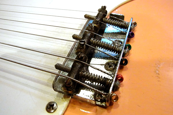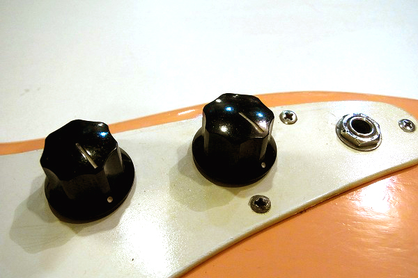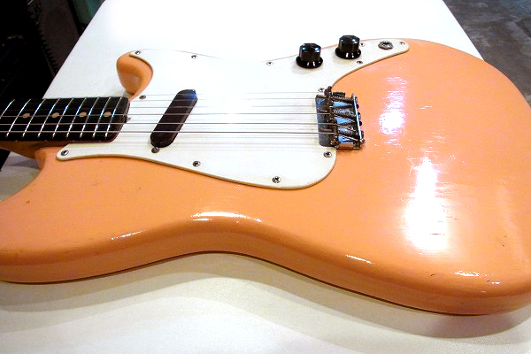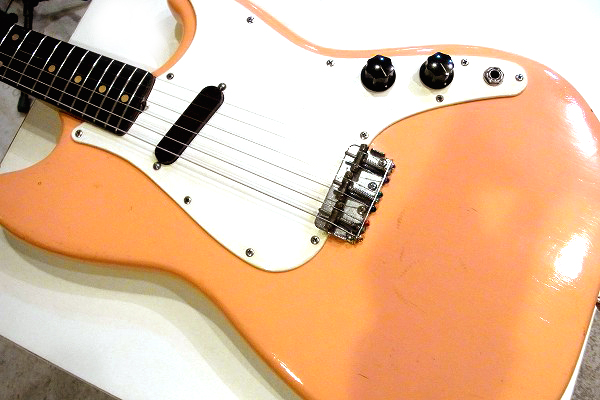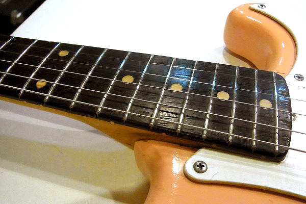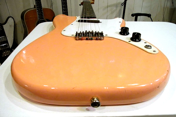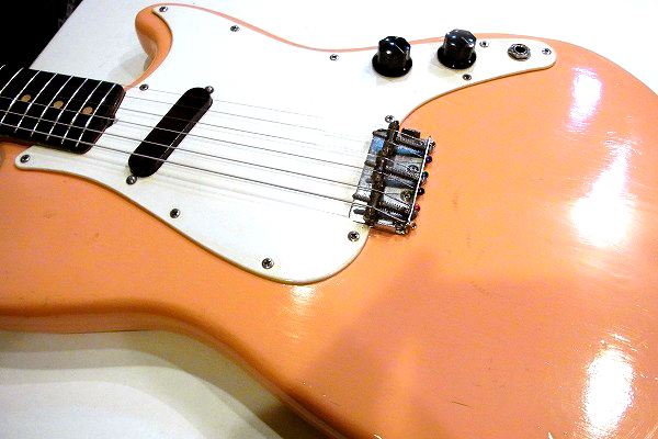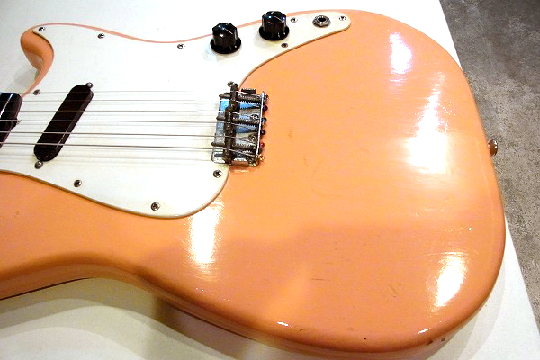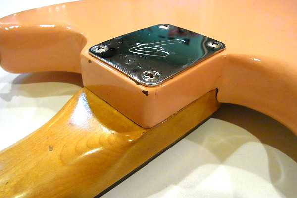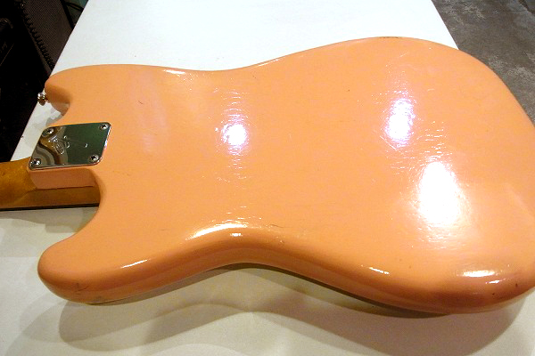 ボディはリフィニッシュ(再塗装)が施されており、現在はやや中間色がかったピンクに塗られています。