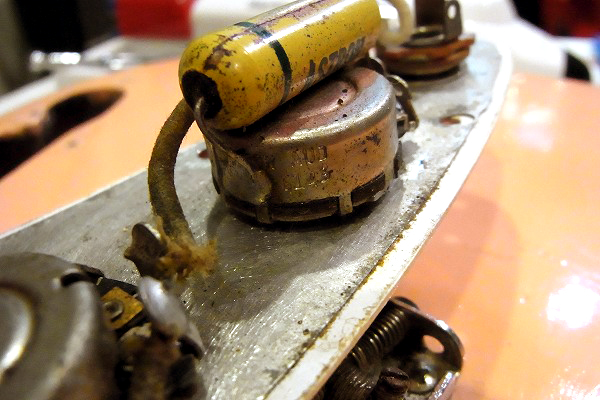 ポットもオリジナルのままで61年製、コンデンサもオリジナルのままです。