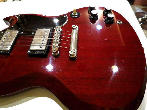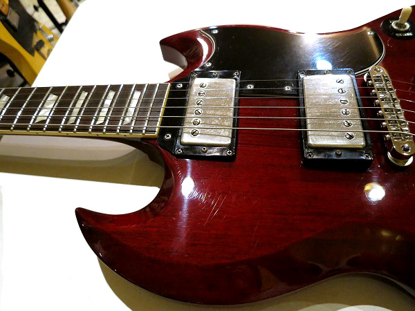 薄めのソリッドマホガニーボディのSGならではのタイトでレスポンス良く、