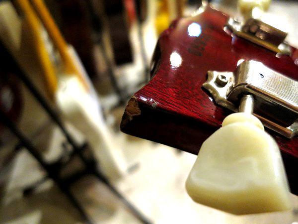 ペグはクルーソンタイプのグリーンキーで、Gibson SG 62年仕様のスタイルを踏襲しています。