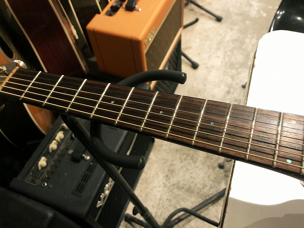 プレイコンディションは良好です。ネックは反りも無く真っ直ぐで良好な状態です。フレットも若干の減り、軽度のへこみはありますが、まだ8分程度は残っており、大きなへこみや弦溝もなく、さらに丁寧に磨きも入れ、光沢も取り戻し、綺麗なコンディションになっています。指板も大きな減り、傷、ダメージはなく、指板も丁寧にクリーニングの上、コンディショニングも行っておりますので、綺麗で良好なコンディションになっています。ネック起き、ブリッジ浮き、トップ浮き等も出ていません。