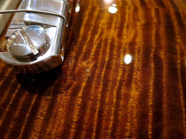 トップは極上の美しいピン・ストライプのトラ杢が浮き出たフュギュアド・メイプル・トップです。
