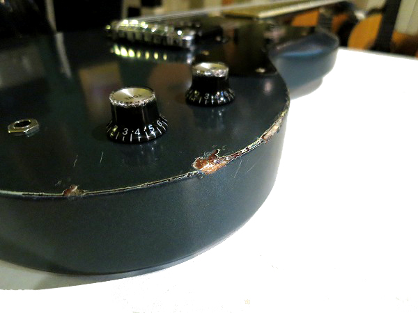 ピックガード、ピックアップカバー、ノブもレリック加工されており、