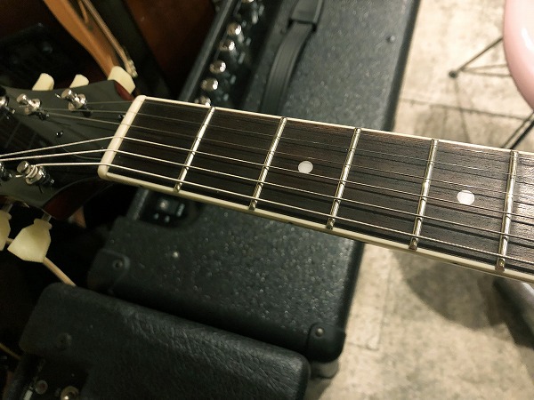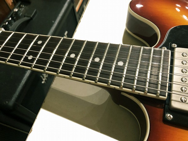 さらに全体的にしっかりとメンテナンス、セットアップを施しておりますので、弦高はローアクションで弾きやすく、ビビリやつまりも無く、各ポジション非常に良好な出音です。現在弦高は12フレット上1弦1.5mm、6弦1.5mmの非常にローアクションで弾き心地抜群です。電気系統も各部メンテナンス、チェック済です。出音、各コントロール共に全て良好で問題ありません。ペグ動作も問題無く、良好なコンディションです。プレイコンディションは良好で、