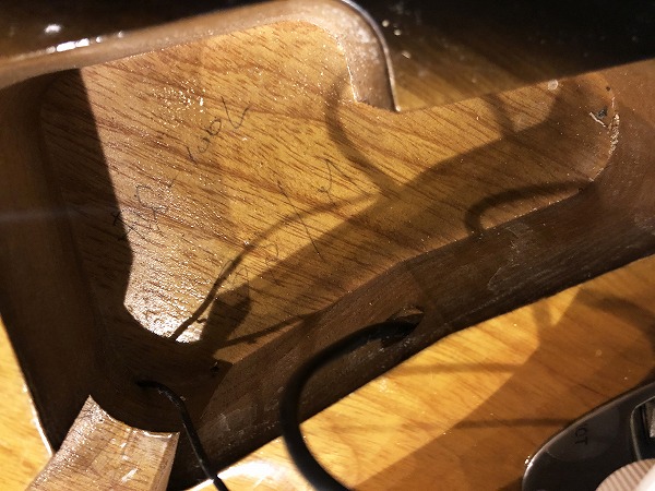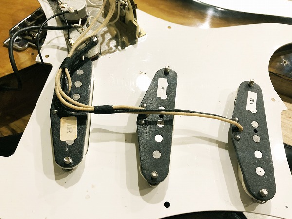 ピックアップもオリジナルのままで、背面に1R、1M、1Mのステッカーが貼ってあり、おそらく SSL-1と思われます。コントロールは1Vol、2Tone、5Way