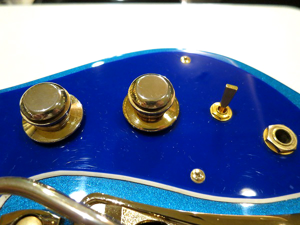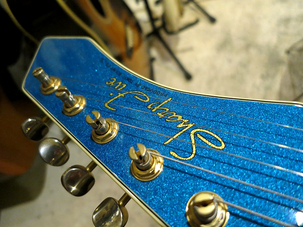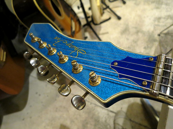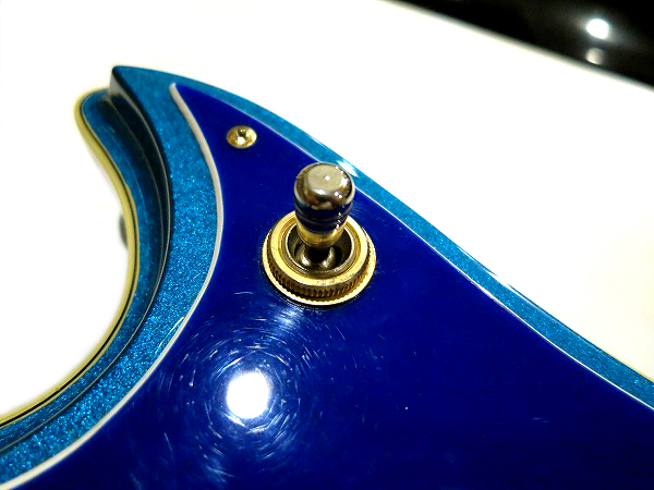 ピックガードもオリジナルシェイプのブルーのピックガード、