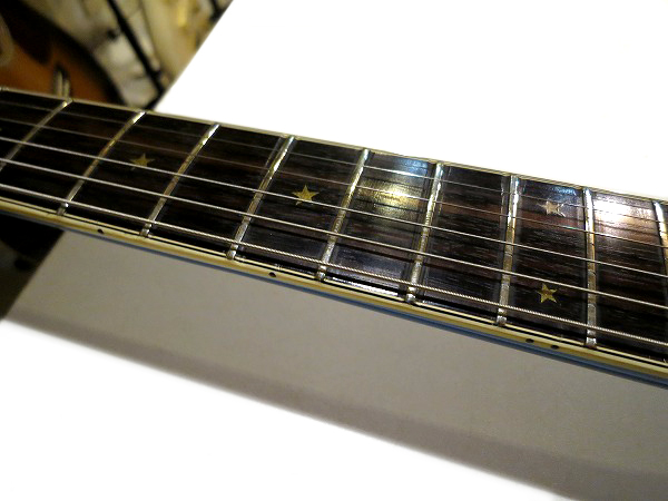 指板も相応に経年感、使用感は見られ、フレット横に少し溝っぽい減り等が見られますが、