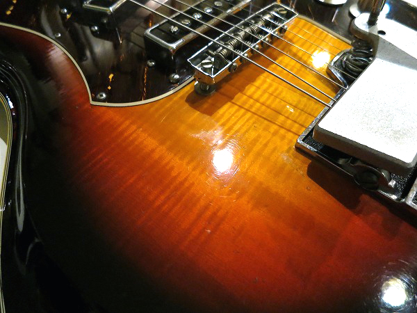 トレモロ動作も良好です。アームバーはオリジナル品は欠品しており、非純正品ですが、