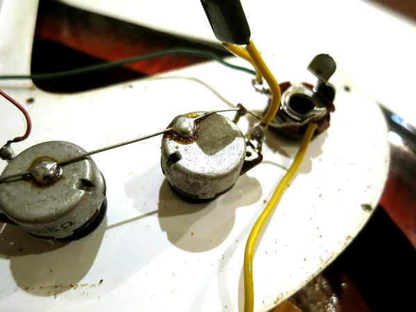 トーンカットスイッチ、各ピックアップのVolume、1Toneといった仕様になっており、