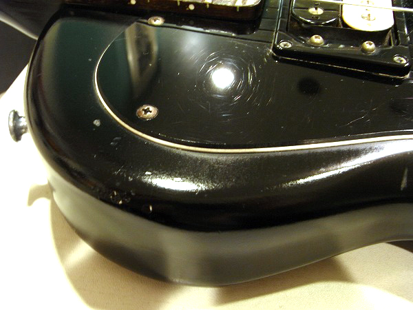 外観的には、相応に使用感、経年感、傷がありますが、 各部丁寧にクリーニング済で、コンパウンド、ポリッシュによる小さな傷の除去、 研磨、光沢出しを行っております。 元々塗装はマット(つや消し)仕様で、使用により光沢が出ている箇所とくすんだ箇所が出ていたため、 全体的にある程度光沢出しを行っております。 これにより全体的に程良い光沢感が出ています。 ですが、元々クリアー仕上げの塗装ではない為、マット感がやや残っている箇所もございます。 全体的には程良い光沢感、ヴィンテージ感のあるルックスではないかと思います。 その他、使用による小さな打痕、塗装剥がれ、擦り傷は相応にございます。 塗装剥がれの箇所は、黒でタッチアップし、あまり目立たない様にしてあります。 トップは比較的傷が少ないですが、バック、ネック裏はやや打痕、塗装剥がれ、塗装のダメージが多いです。 ネック裏は引っ掛かりや、演奏に支障のあるようなダメージはありません。 ネックは直接弾かれる箇所ですので、研磨効果でより光沢感が出ています。 その他ヘッドのサイドやエッジにも打痕や塗装剥がれがありますが、