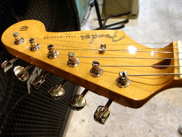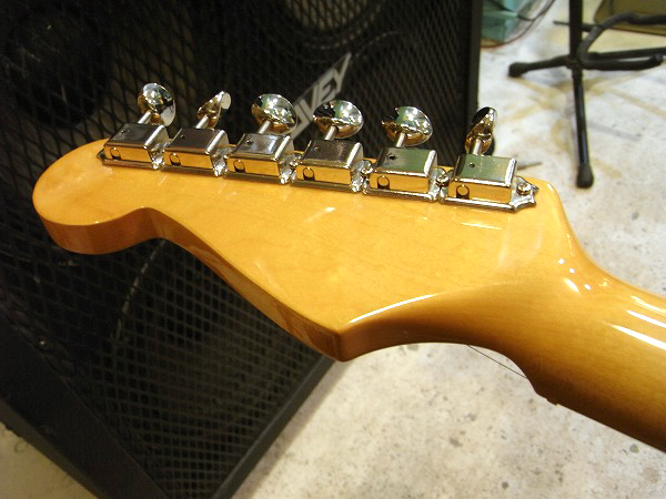 ネックはメイプル1ピース、Fenderスモールヘッドにヘッドロゴはヴィンテージスタイルのスパロゴタイプ、