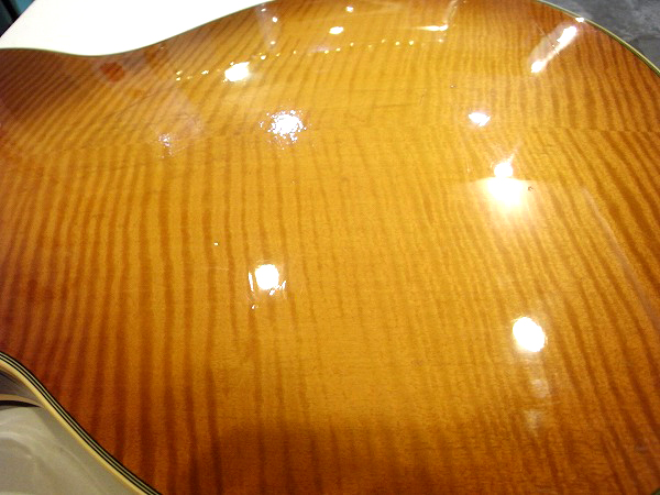 トップは熱による成形では無く、単板メイプルを丹念にアーチ状に削り出しています。