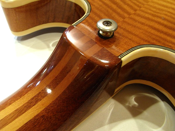 トップは厚みのあるメイプル単板を使用し、丹念に美しくアーチ状に削り出されています。