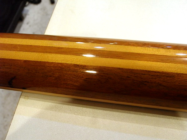 サイド、バックは非常に美しいピンストライプのトラ杢がくっきりと浮き出た、激トラのシカモア。